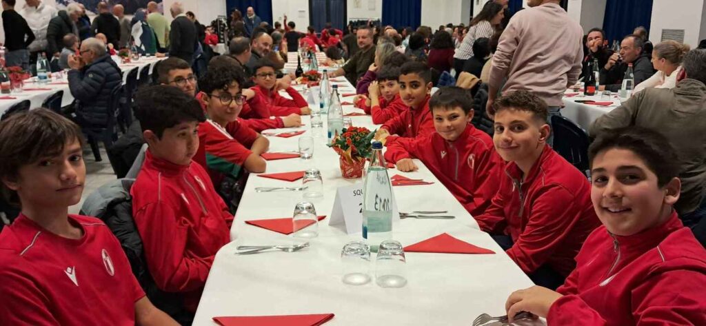 Un successo la tradizionale cena sociale organizzata dall’US Reggiolo Calcio per lo scambio degli auguri delle Festività. Presso la Sala Polivalente “Nino Za” presenti 350 persone –atleti, tecnici, collaboratori e familiari- a conferma dell’importanza che ha assunto, negli anni, questo appuntamento voluto fortemente dalla dirigenza biancorossa. Al maxi incontro conviviale hanno partecipato tutti gli atleti dell’US Reggiolo Calcio -dalla prima squadra, allenata da mister Luca Padula col vice Graziano Troni, Stefano Bernardelli preparatore portieri, Gianfranco Mastini fisioterapista- alla Scuola Calcio/Primi Calci 2017, con allenatori, accompagnatori e tanti genitori. Il Presidente della Società biancorossa, Luigi Galli, ha ringraziato il Sindaco Roberto Angeli per la sua presenza, il quale ha evidenziato l’importante ruolo della Società Biancorossa “nella gestione di tanti giovani locali nella pratica sportiva”. Molti gli applausi nel momento della presentazione – con sfilata sul palco per le foto- di tutte le formazioni con allenatori e accompagnatori partendo dai più piccini della Scuola Calcio/Primi Calci 2017-’18-’19 –‘20, poi i Pulcini 2015-’16, gli Esordienti 2013-’14, i Giovanissimi 2011, gli Allievi Under ’16, arrivando alla Prima squadra di mister Luca Padula. Si sono divertiti tanto i più piccini della Scuola Calcio che hanno cenato assistendo allo spettacolo del “Mago” coi suoi racconti. Alla fine applausi per il gruppo dei volontari della Società -che da anni gestiscono lo stand gastronomico del Torneo Città di Reggiolo- per l’ottima cena servita e per CONAD. A fine serata, il sorteggio dei numeri vincenti i premi messi in palio dalla sottoscrizione interna: Smart TV, Prosciutto di Parma, cena per due al Toscanini Cantina e Cucina, Abbigliamento Macron, Cesto Natalizio e tanti altri. Chi non ha ritirato i premi può farlo rivolgendosi presso la sede di via Gavello. (af)