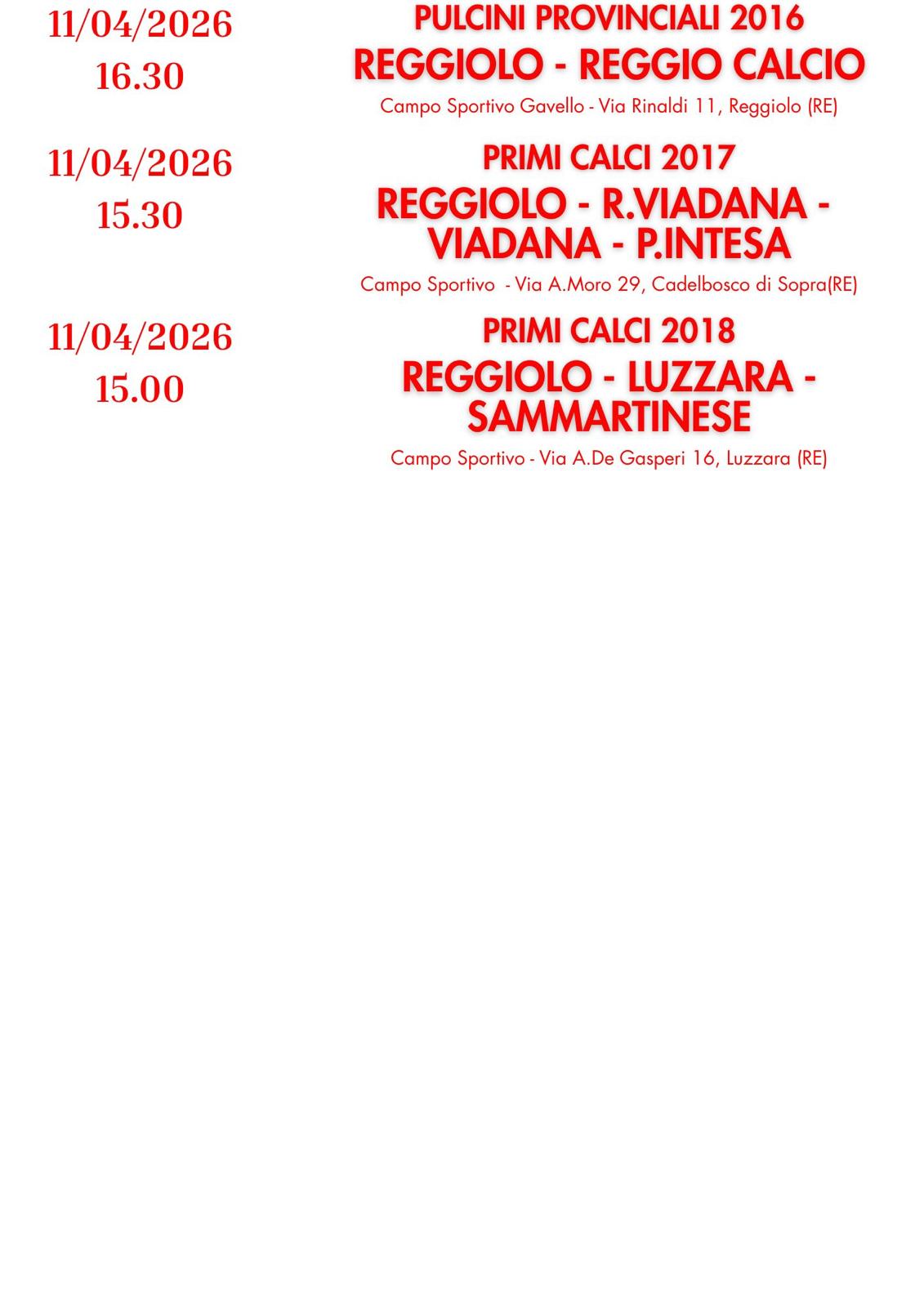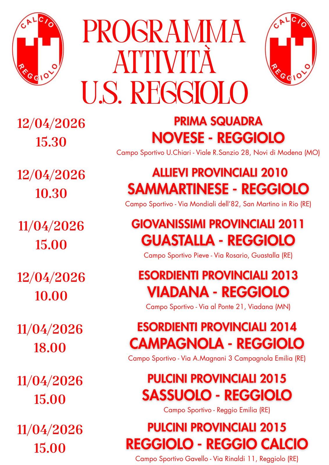 PROGRAMMA PARTITE 11-12 APRILE 2026
