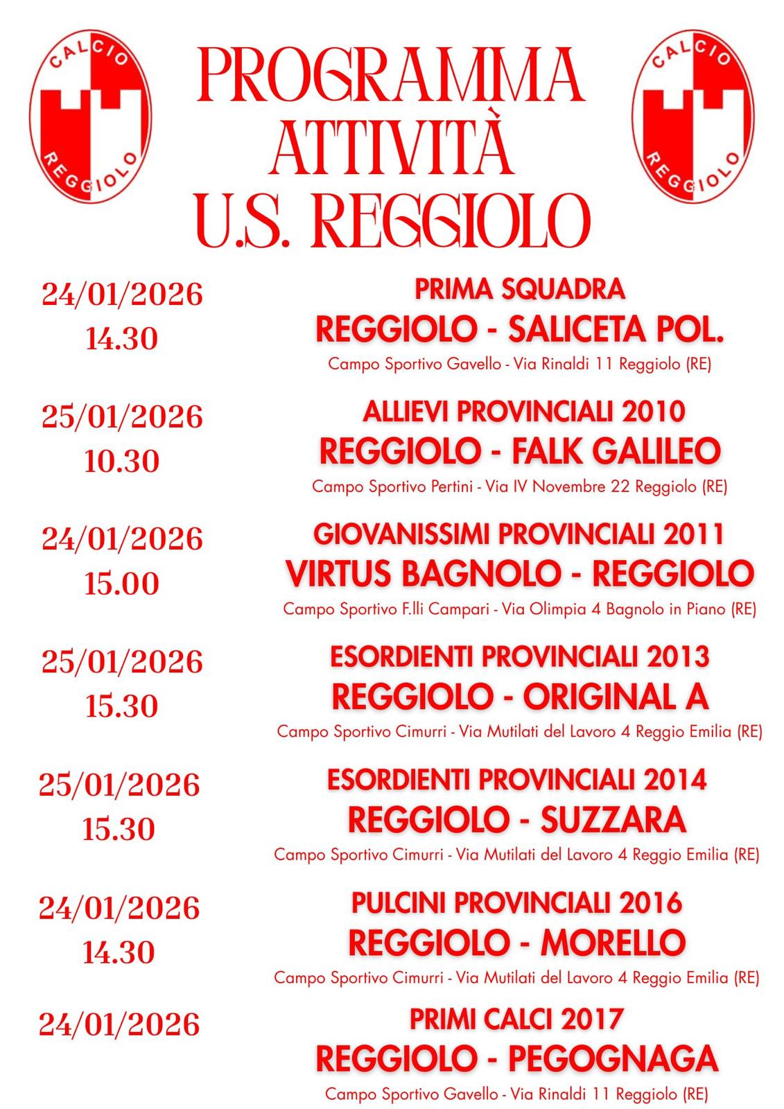 PROGRAMMA PARTITE 24-25 GENNAIO 2026
