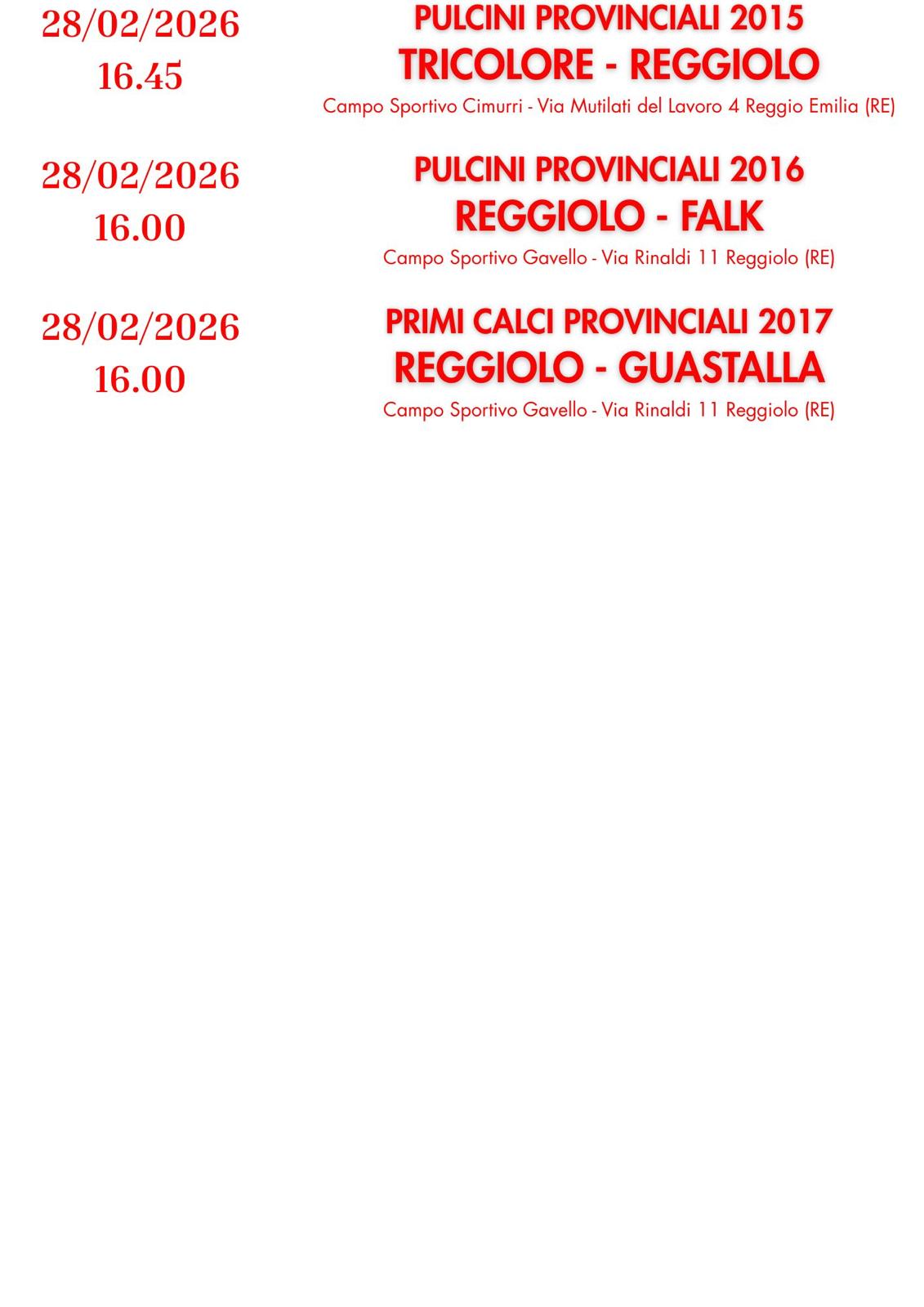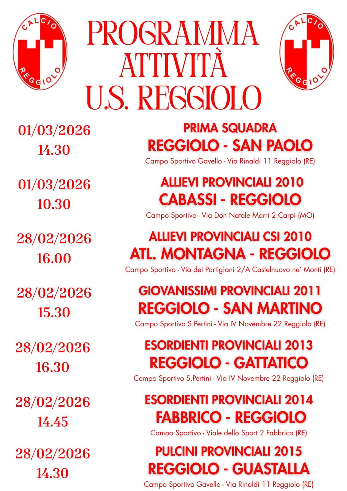 PROGRAMMA PARTITE 28 FEBBRAIO E 1 MARZO 2026