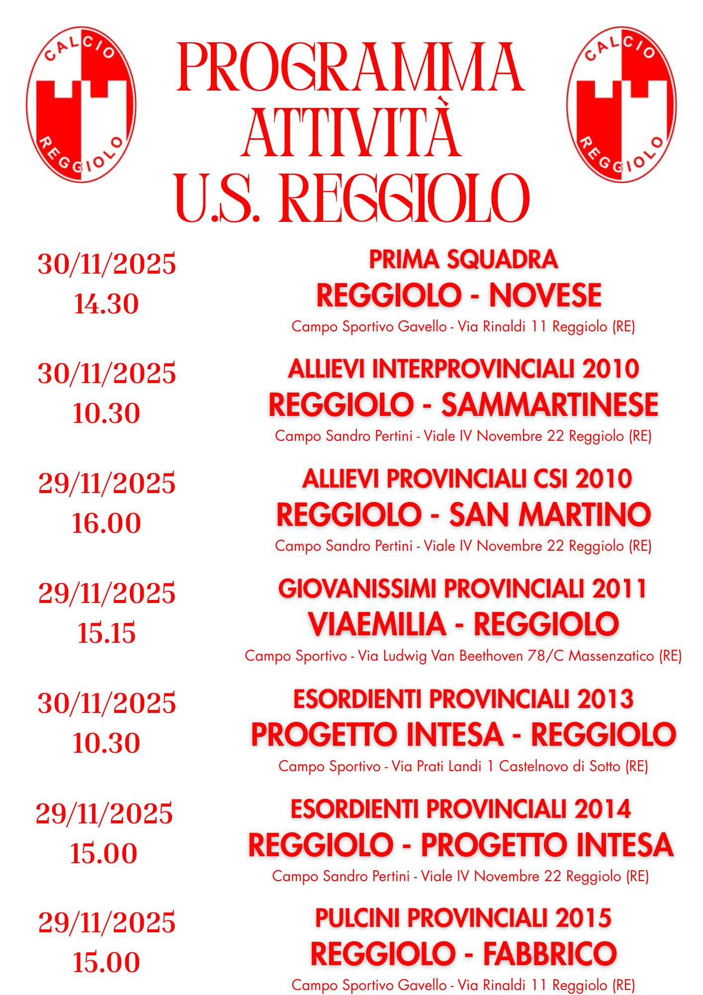 PROGRAMMA PARTITE 29-30 NOVEMBRE 2025