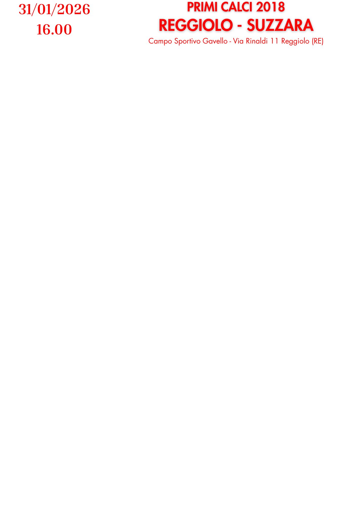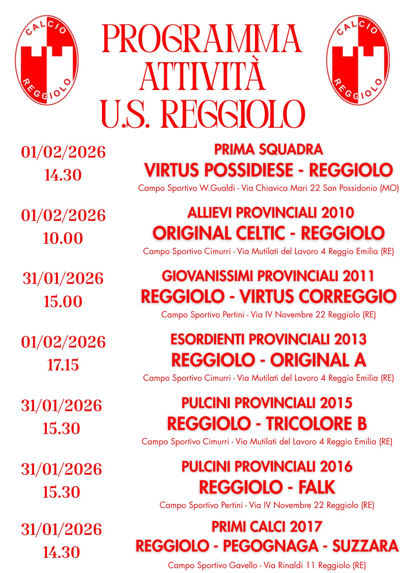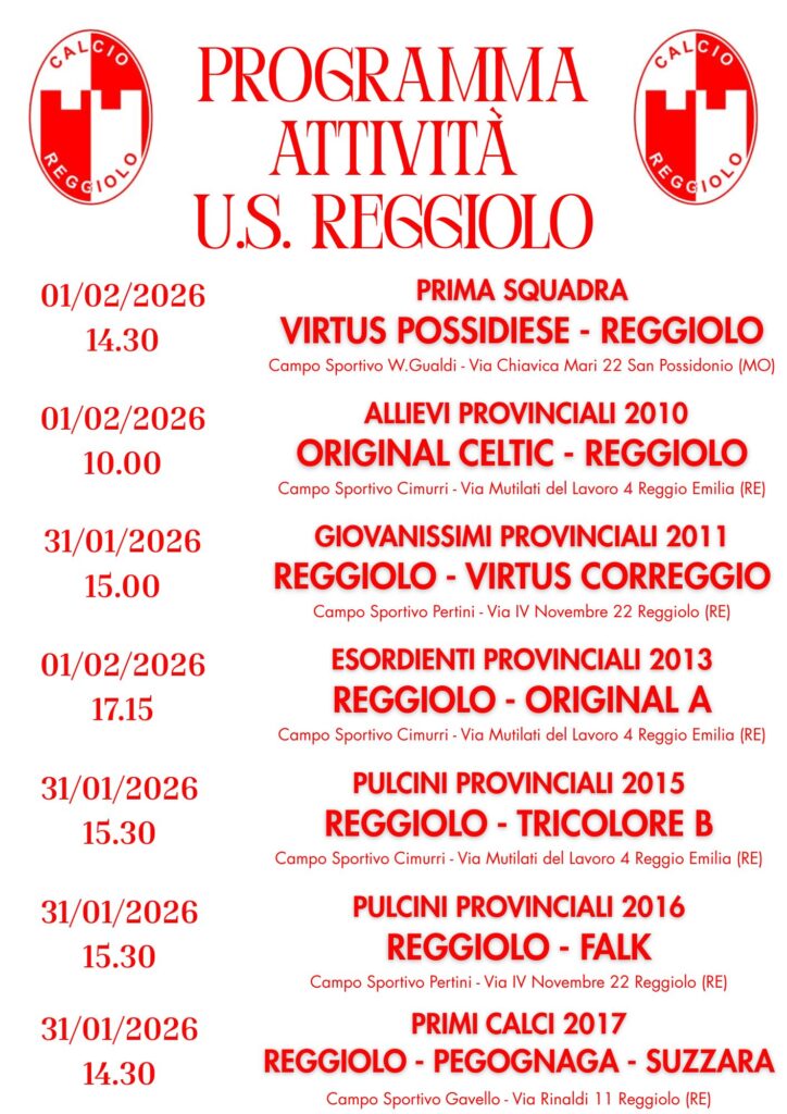 PROGRAMMA PARTITE 31 GENNAIO E 1 FEBBRAIO 2026